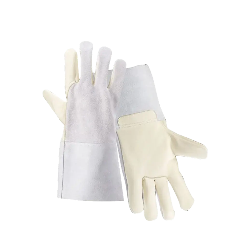 These welding gloves combine rugged leather strength with soft inner comfort. They offer strong heat resistance to protect from sparks and splatter. Reinforced stitching and palm panels add long-term durability. Extended cuffs protect wrists during intense metalwork. Their balanced flexibility and grip support both heavy-duty and precision welding tasks. Perfect for workshops and industrial welders who value safety and dependable performance.