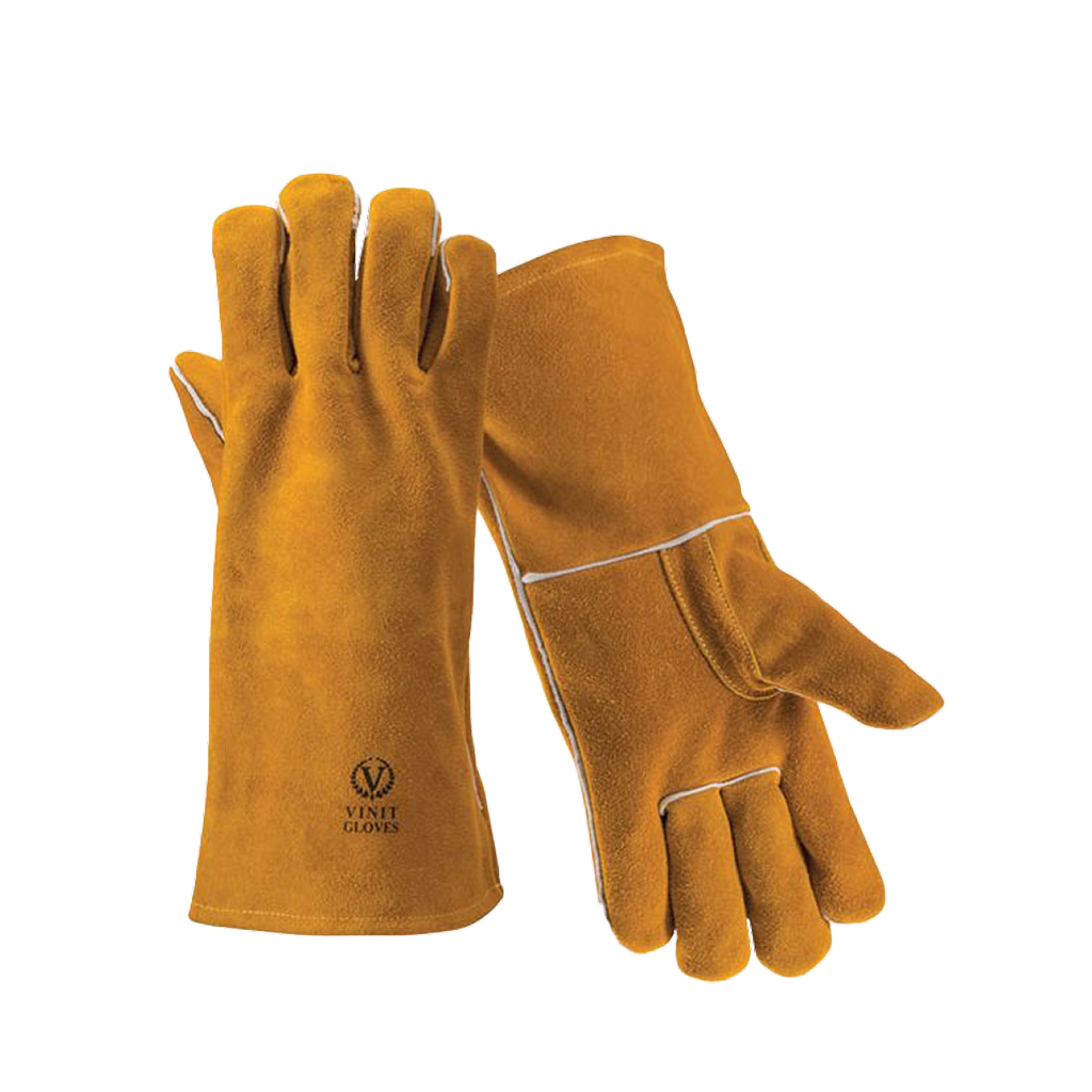 Robust welding gloves offering strong heat protection with reinforced leather for safe and steady handling during heavy-duty welding.
